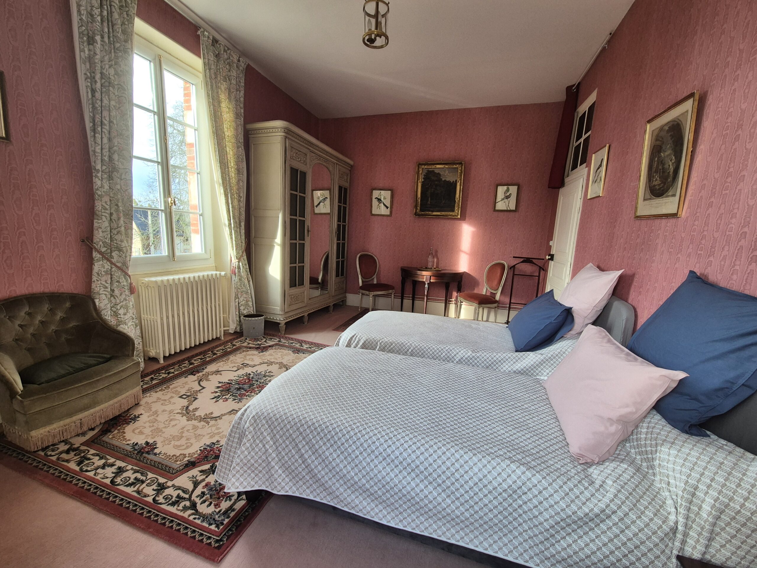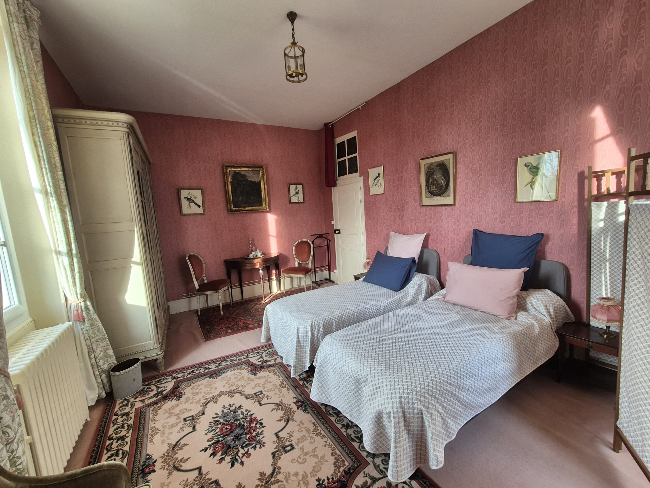 Cette suite, composée de deux chambres spacieuses, l'une avec son lit double de 160cm, la seconde avec ses deux lits simples, vous offre une large vue sur le parc du manoir.